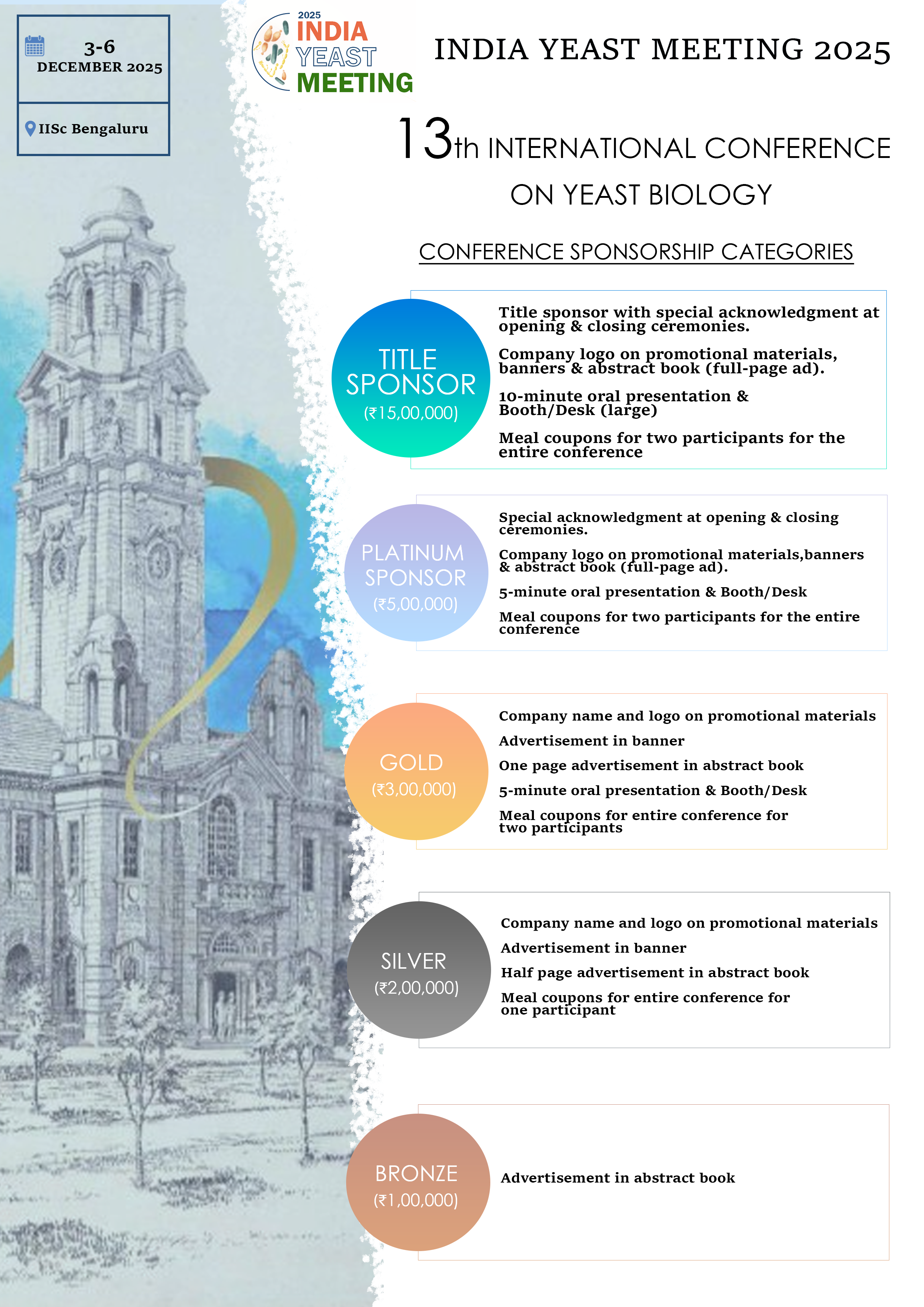 Join us in supporting the global yeast research community. We offer various sponsorship packages to showcase your organization's commitment to scientific advancement.